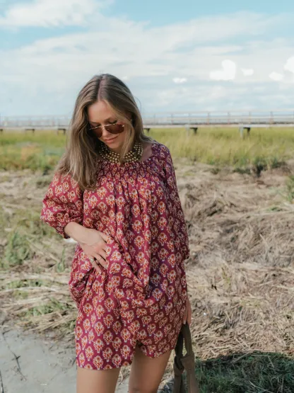 Our signature Sweet Set, now with 3/4 sleeves. The top features a flowing puff sleeve with comfortable elastic that can be worn on or off the shoulder, paired with our matching shorts. This colorway is fully lined.